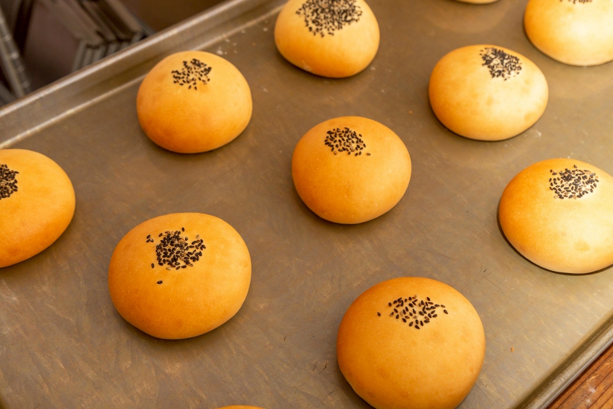 気まぐれ販売にもかかわらず、出した日には即完売。お客さまの定番化を望む声により定番商品となった、生地に合う優しい甘さと食パンのようなモチモチ食感が人気の「シェフの気まぐれあんぱん」。