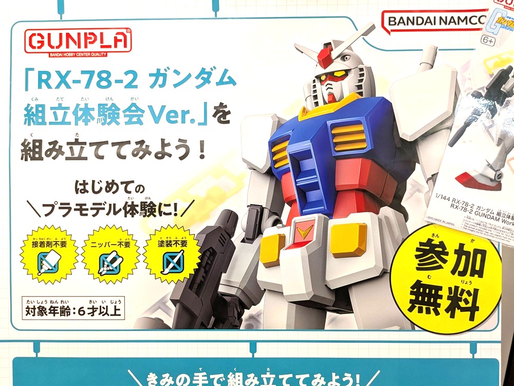 はじめてプラモデルに挑戦するお子さまにもぴったりな内容で、組み立てたガンダムはそのままプレゼントされる嬉しいイベントです。