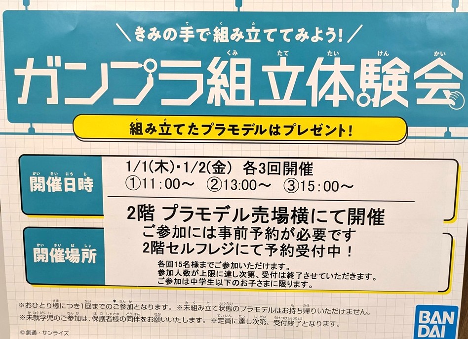 無料で参加でき、完成したガンダムを持ち帰れる体験イベントは、お正月のお出かけ先としてもぴったりです。
