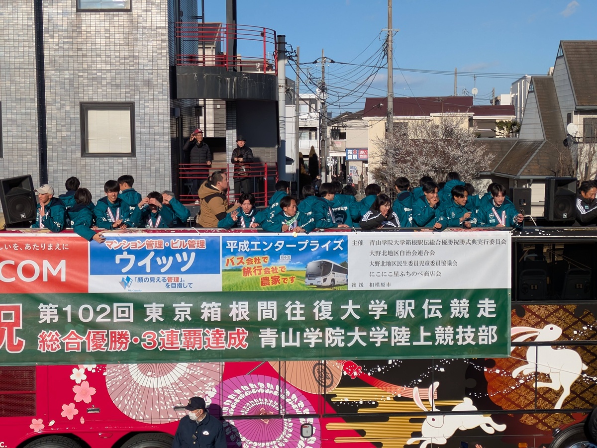 【相模原】本日開催!青学大3連覇の箱根駅伝優勝パレード、淵野辺駅前が歓喜に包まれる