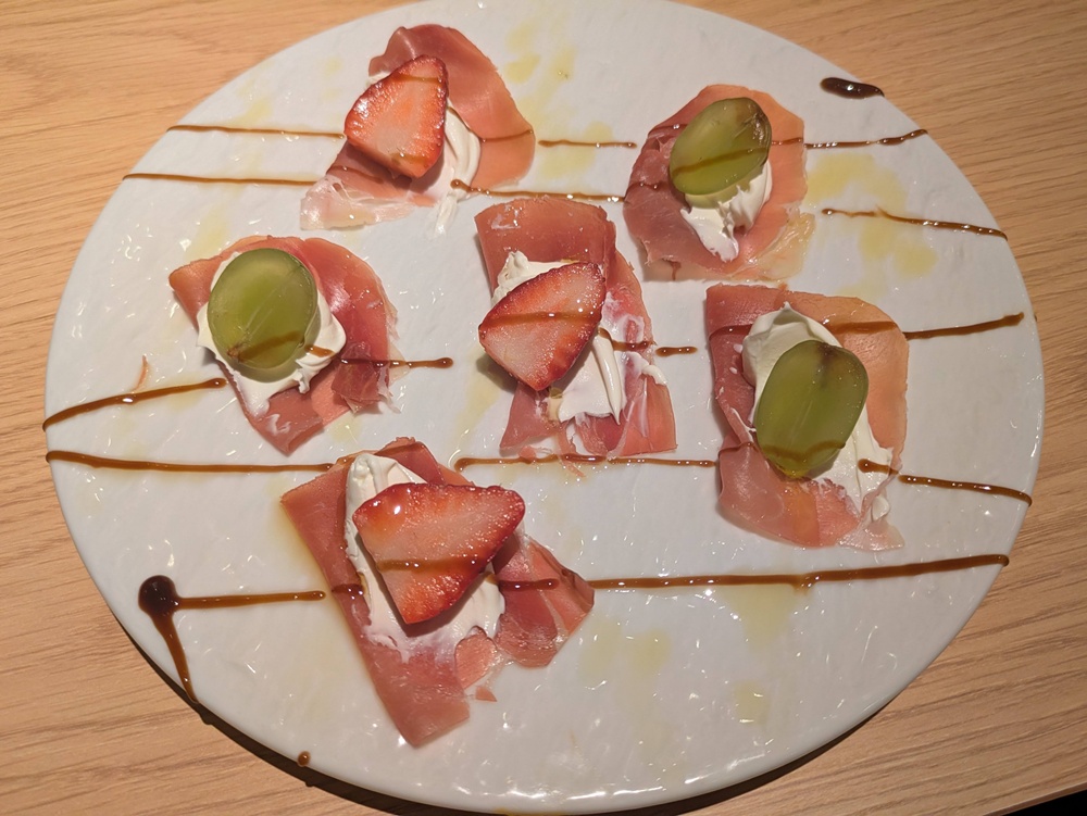 塩気のある生ハムと、まろやかなマスカルポーネ、フルーツの甘みが一体となった一品。