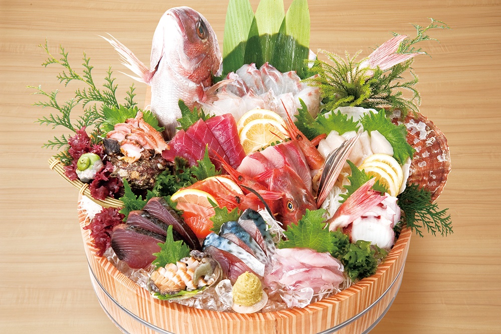 「大庄水産」は、全国の漁港から届く新鮮な魚介を、豪快に・コスパよく楽しめる海鮮居酒屋。水槽から取り出した活貝をその場で焼く浜焼きや、板前が目の前でさばく刺身盛り合わせが名物です。