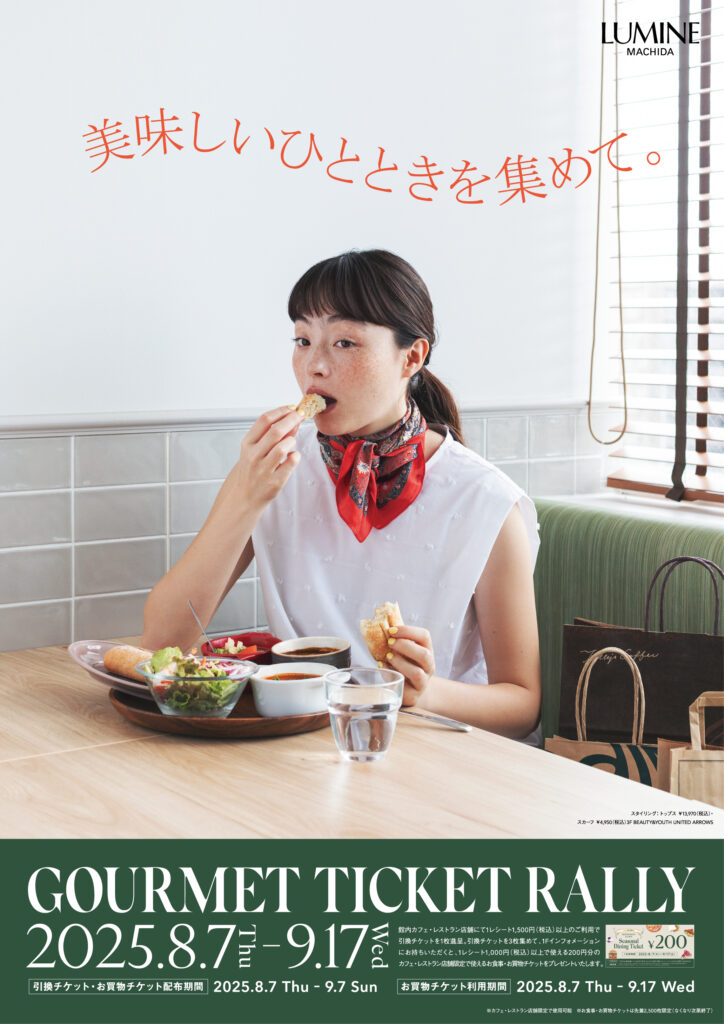 ルミネ町田では、館内の飲食ショップで食べて・集めて・お得に楽しめる「GURUMET TICKET RALLY(グルメチケットラリー)」を開催します。チケットを集めて、カフェ・レストラン限定のお買物チケットと交換できるお得なキャンペーンです。