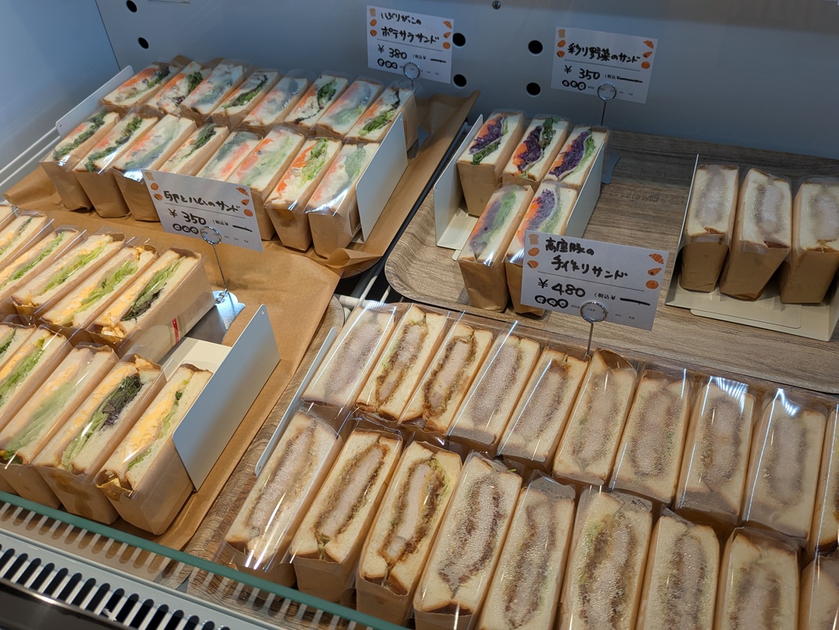 ショーケースには彩り豊かなサンドイッチも並び、ランチ需要にも対応できそうです。