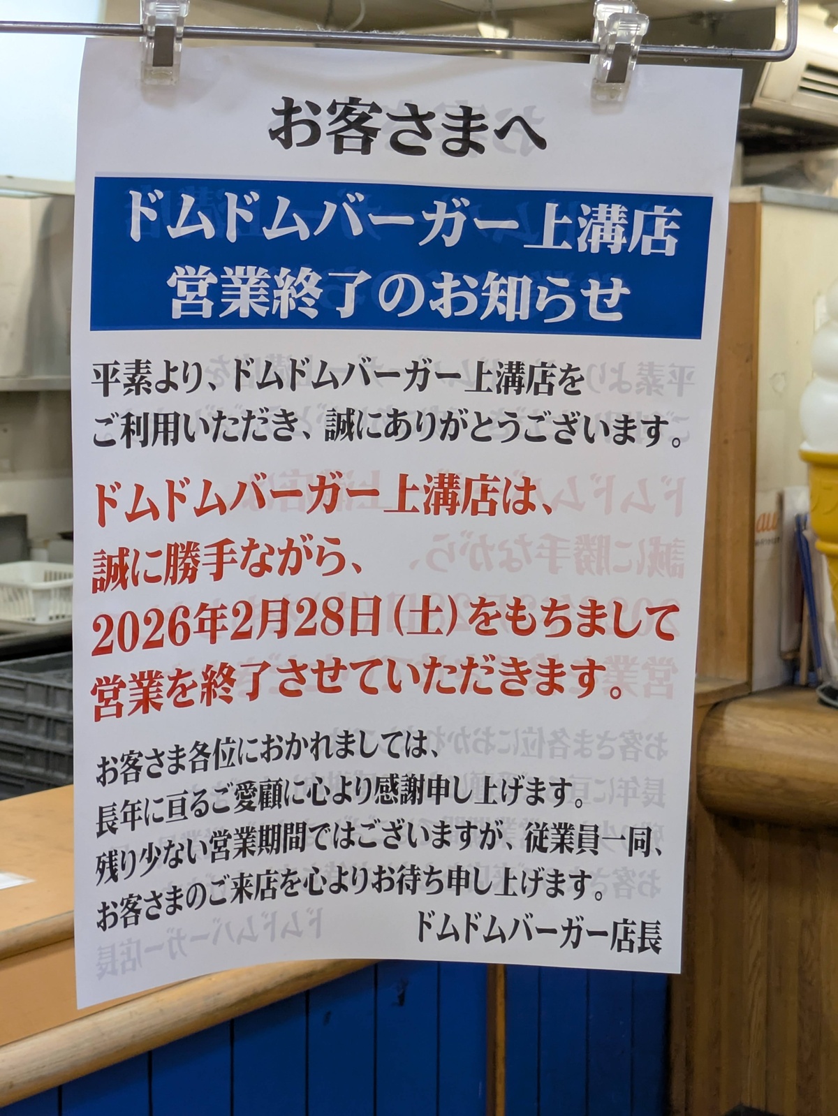 - ドムドムバーガー上溝店:2026年2月28日(土)で閉店