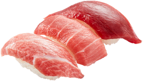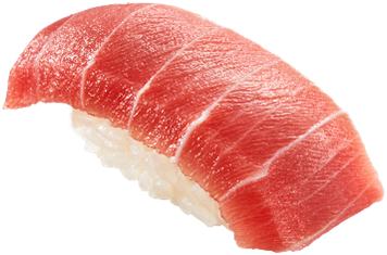 鮪の王様“本鮪”の赤身を贅沢に大切り。コクと旨みが楽しめます。 - 天然本鮪 大とろ(一貫390円/税込)