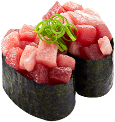 脂の甘みと旨み、とろける食感が魅力の一品。 - 天然本鮪 ぶつ軍艦(二貫390円/税込)