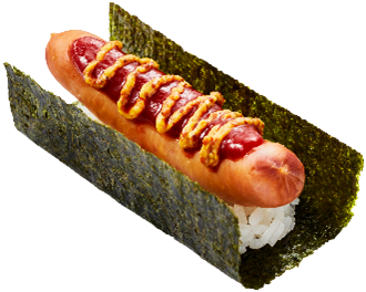 相模原産ブランド豚「相模豚」を使用したジューシーなウインナーとポテトのセット。 - ウインナーのすしドッグ~ケチャップ・マスタード~(230円/税込)