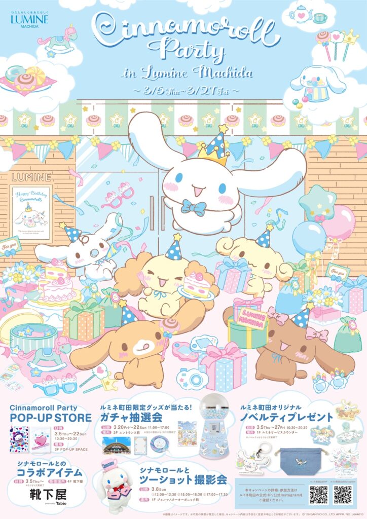 町田駅直結のルミネ町田で、シナモロールの誕生日をお祝いするイベント「Cinnamoroll Party in Lumine Machida」が開催されます。