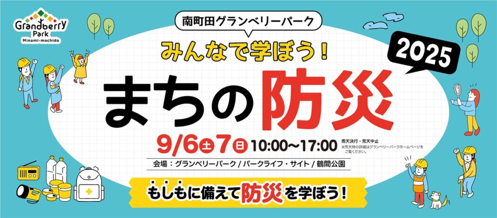 5年目の開催となる今年も、体験型イベントが盛りだくさん!南町田グランベリーパークで「みんなで学ぼう!まちの防災2025」が開催されます。消防・自衛隊・町田市に加え、各企業も参加する、まち全体で作り上げる防災イベントです。