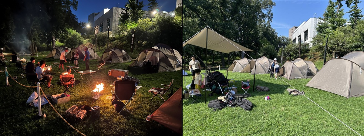 スノーピークと一緒に、テント設営や焚火体験を通して災害時の生活を体験。アウトドアスキルも身に付きます。