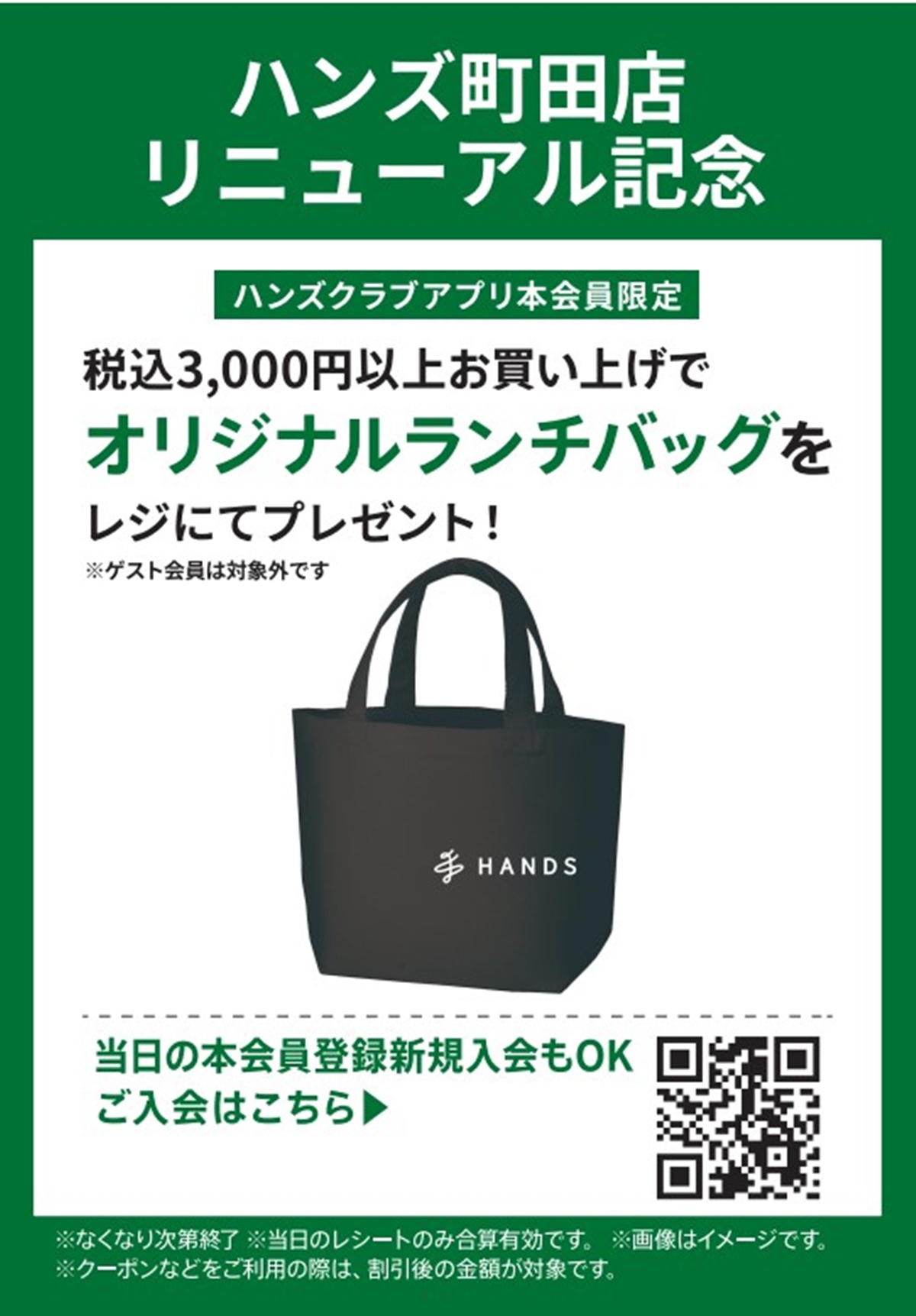 3月8日(日)までの期間中、ハンズクラブアプリ本会員限定で、税込3,000円以上購入すると「オリジナルランチバッグ」をプレゼント。