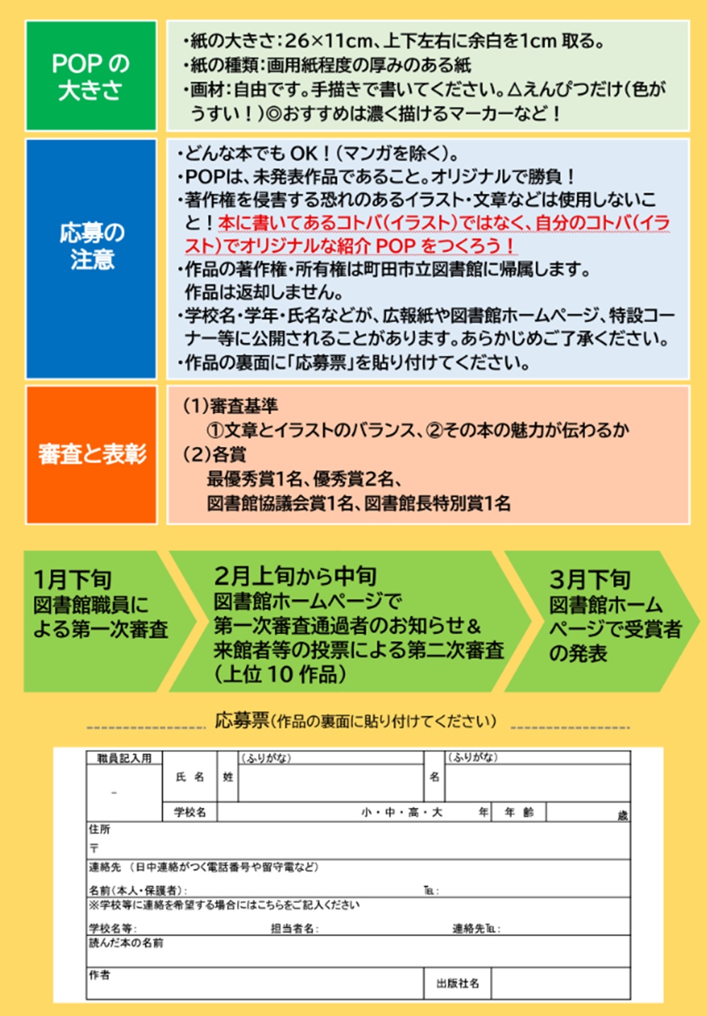 町田市立図書館では、小学4年生から18歳までの方を対象に、読書の楽しさを知り、親しみを持ってもらうことを目的にした「推し本を伝えよう!ひとことPOPコンテスト2025」を開催します。
