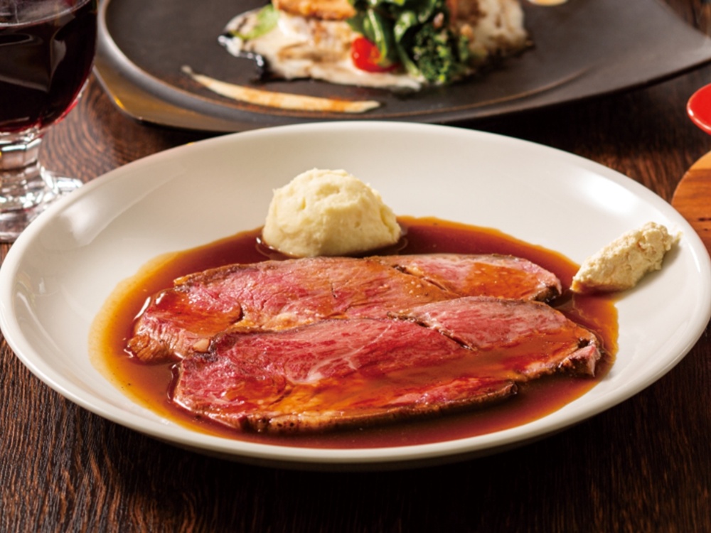 ディナータイムには「低温焼成やわらかローストビーフ」など、ワインと相性抜群の肉料理も充実。