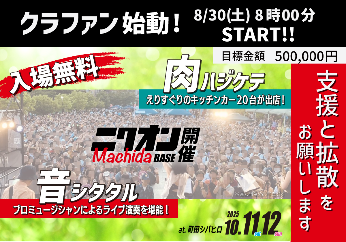 クラウドファンディングで支える町田発の肉と音楽イベント
