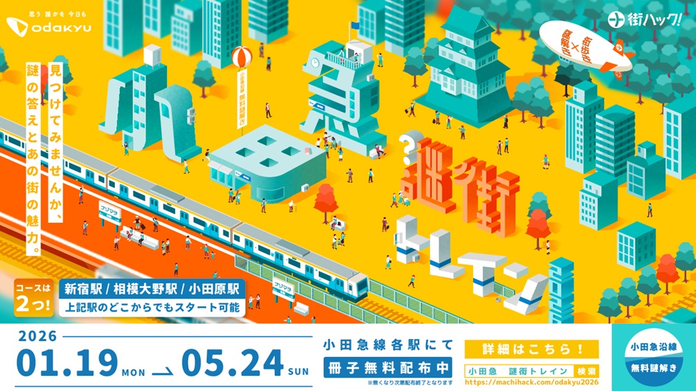 小田急線沿線を舞台に、街を歩きながら謎を解く体験型イベント「小田急謎街トレイン2026」が、2026年1月19日(月)からスタートします。参加費は無料。小田急線各駅で配布される冊子とスマートフォンを使って、誰でも気軽に挑戦できるイベントです。