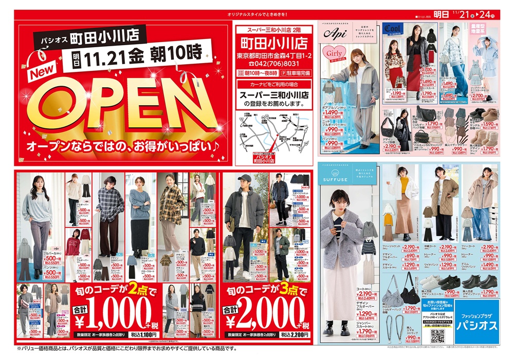2025年11月21日(金)、東京都町田市の「スーパー三和小川店」内に、ファッションプラザ「パシオス 町田小川店」がオープンしました。
