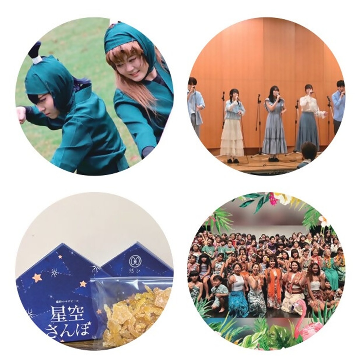チアダンス、アカペラ、コスプレパフォーマンス、キッズダンス、ギター弾き語り、漫才など、個性豊かな演目が登場。