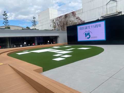 広場には約350インチの大型デジタルサイネージが設置され、地域情報やイベント情報などが発信される予定です。