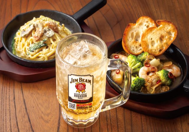 ハーフサイズのスパゲッティ+ドリンク+鉄板バルのセット。ガーリックトーストやアヒージョなど、バルメニューも充実!イートインのみ:1,350円~(税込)